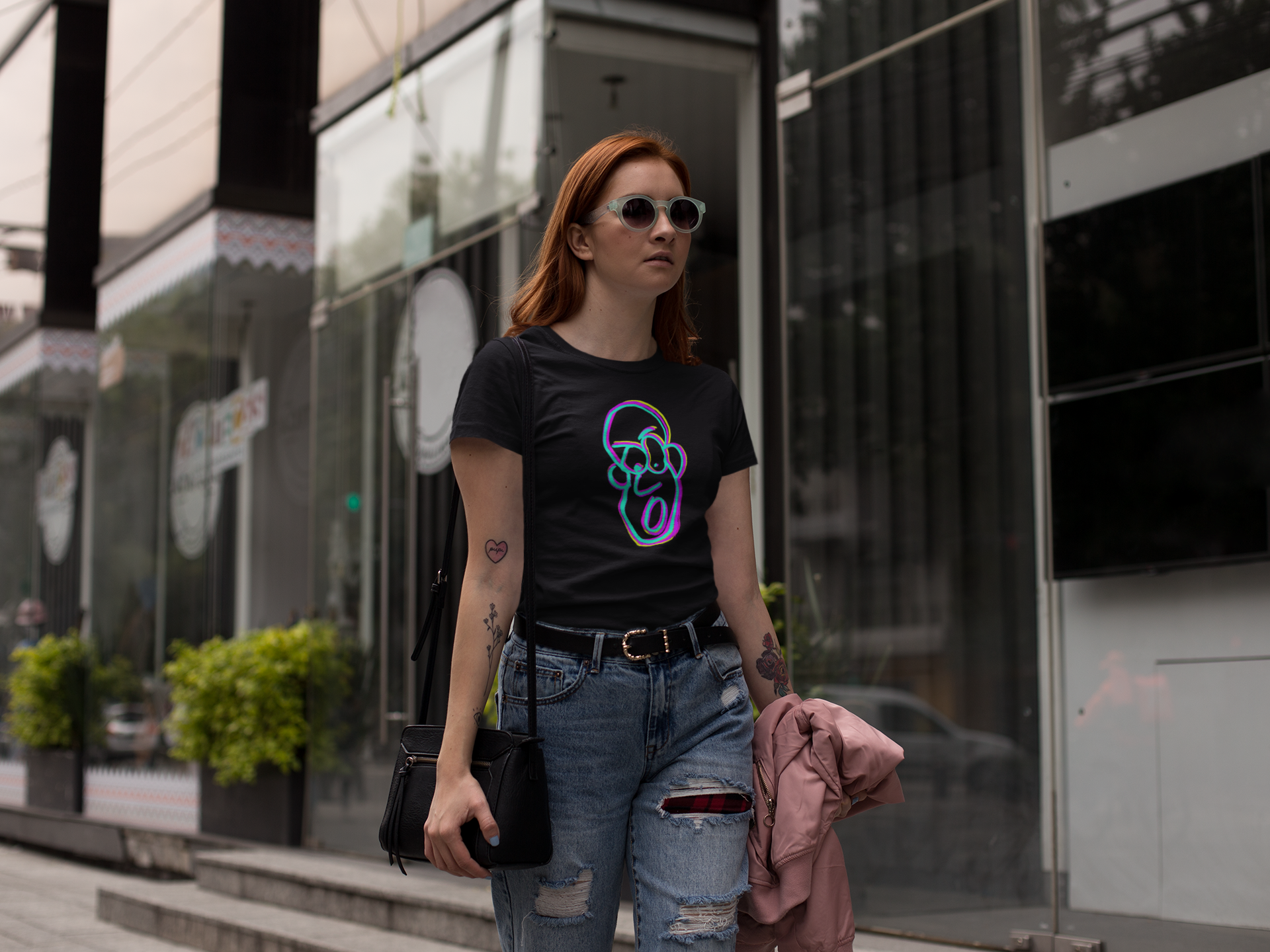 Featuring playful, bold designs with a mix of striking colors and dynamic patterns, these t-shirts are guaranteed to turn heads. The most sought-after style, Garage Faces, showcases a cartoon-inspired face, hand-painted in bright neon hues that pop against a classic black background.